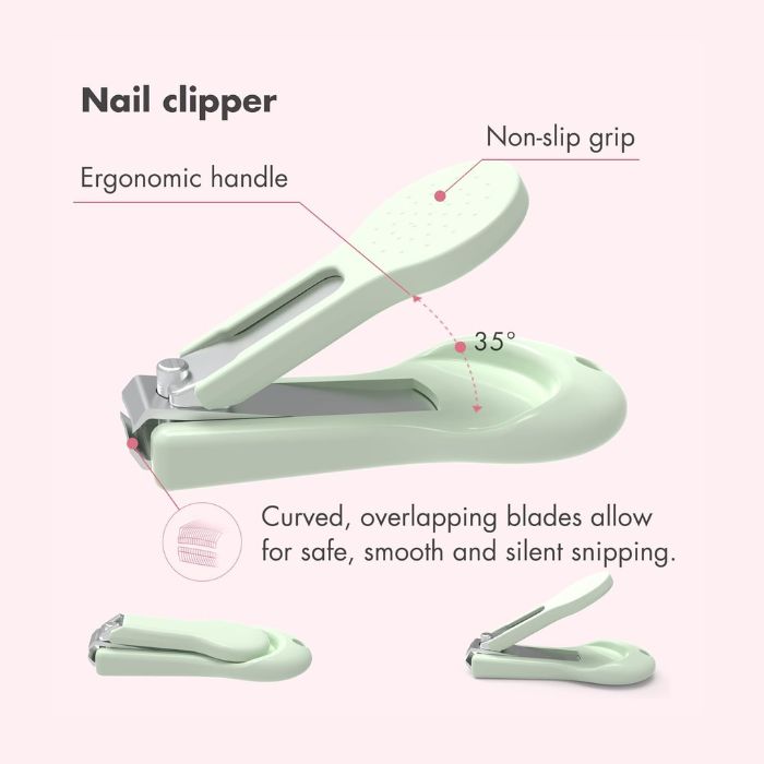- This isn’t just a nail clipper, but an entire grooming kit that includes a baby nail clipper, non-slip handled baby scissors, soft-tipped tweezers, and a gentle glass nail file that won’t shred nails or hurt the skin around them. It comes with a protective and adorable case. This baby manicure set is one of the safest and easiest-to-use options available in the market right now.
